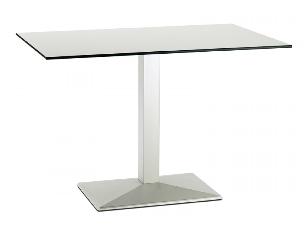 - Quadra Tischgestell, Sockel aus sandgestrahltem Gusseisen 600x400 mm, Rohr 80x80 mm aus Edelstahl in verschiedenen Farben pulverbeschichtet.