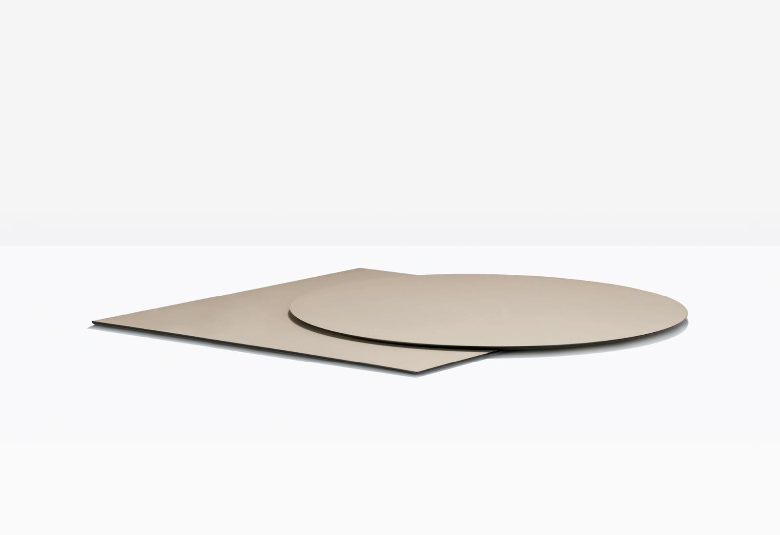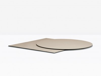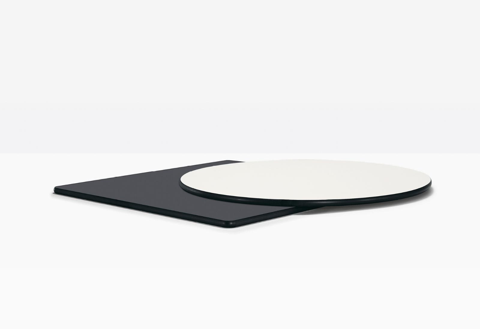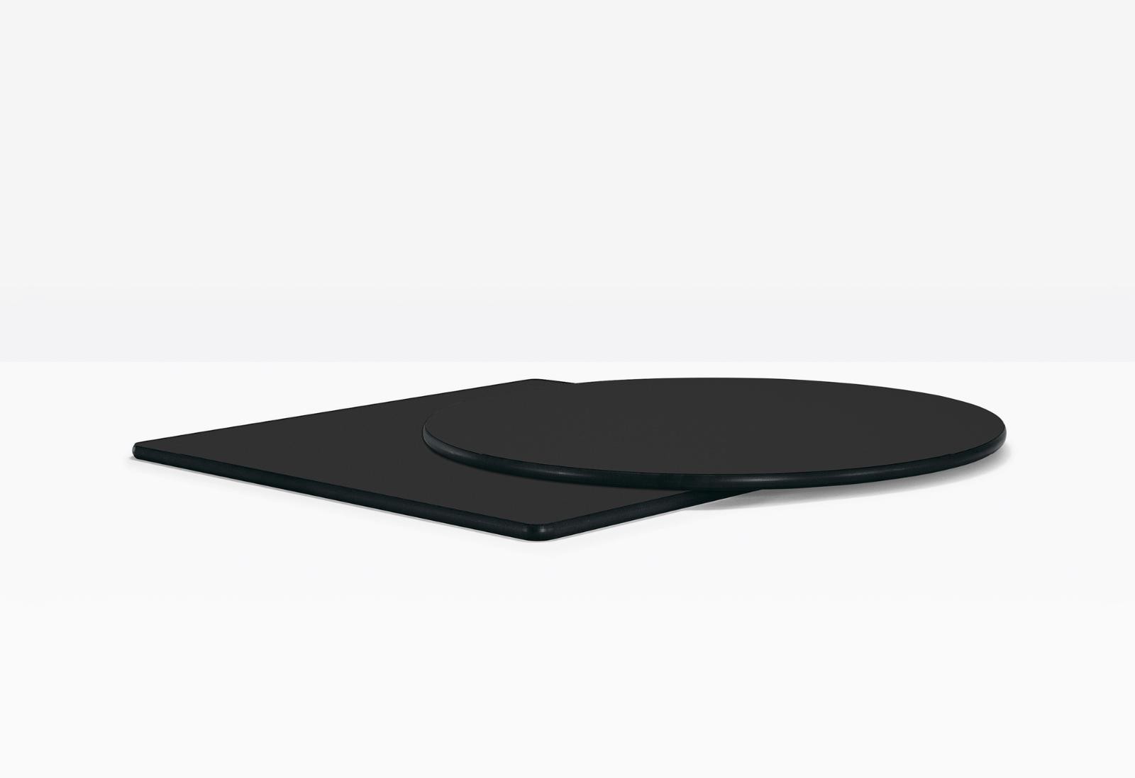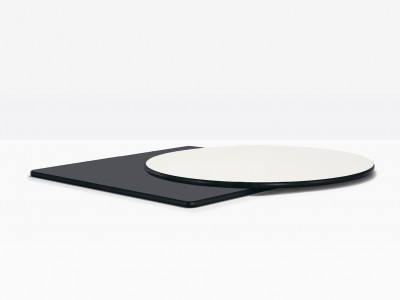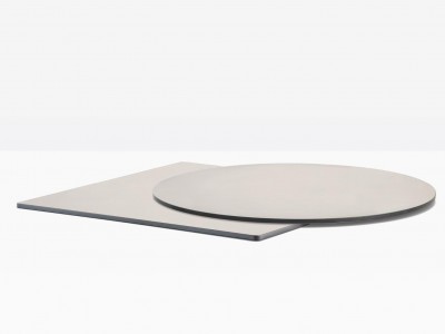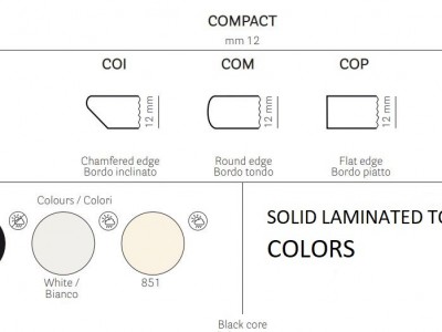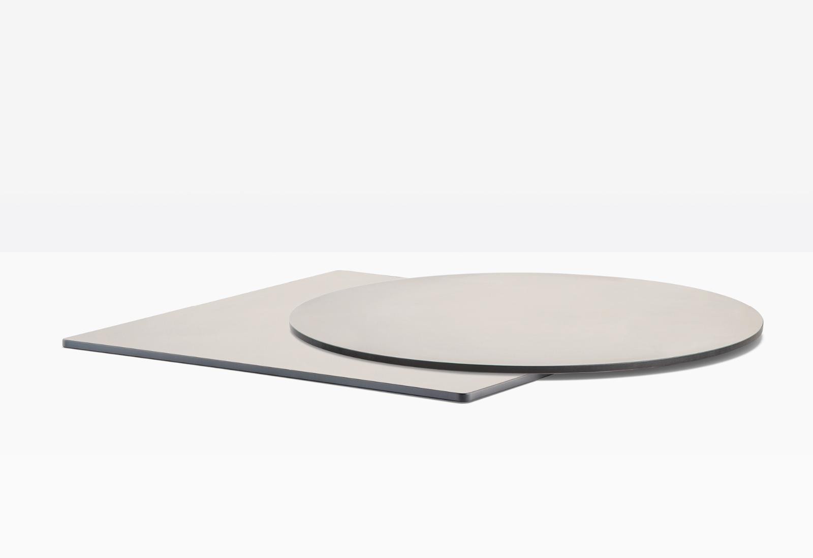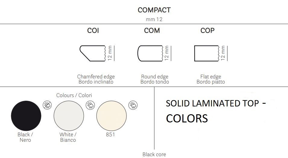 - Kompakte Tischplatte aus massivem Laminat.