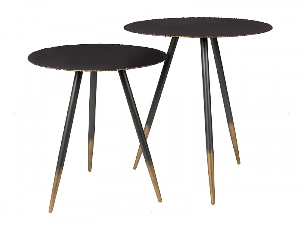 - Stalwart industrial looking metal side tables with a roughly welded edge
