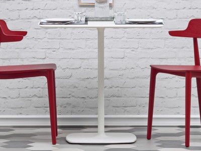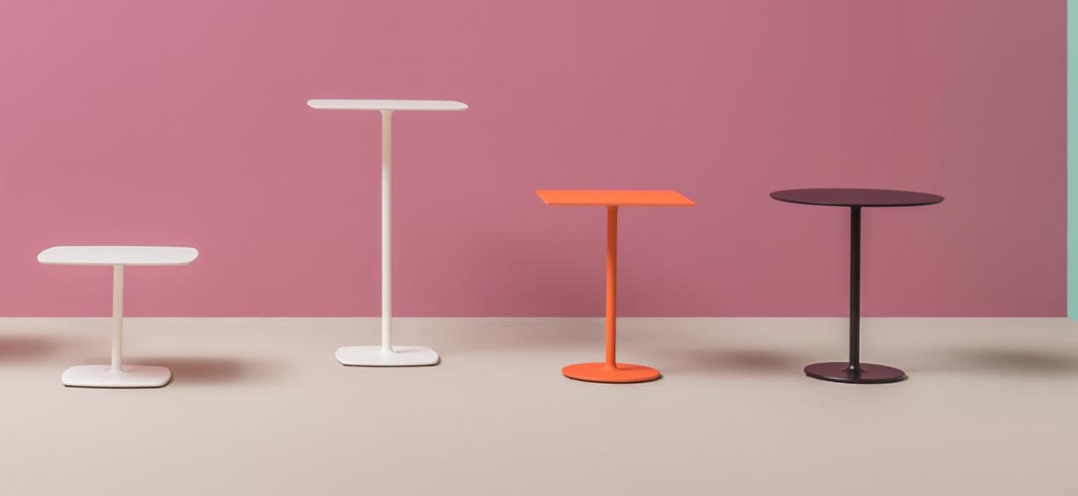 - Stylus Tischfuß Familie, mit seinem minimalistischen Look, wird nun mit einer neuen Version mit runden Boden Ø400 mm und Höhe 730 mm vergrößert.