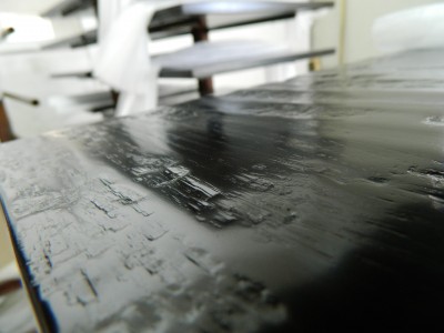 - Massiv Eichenholz Tischplatte mit Stahlverstärkung.
