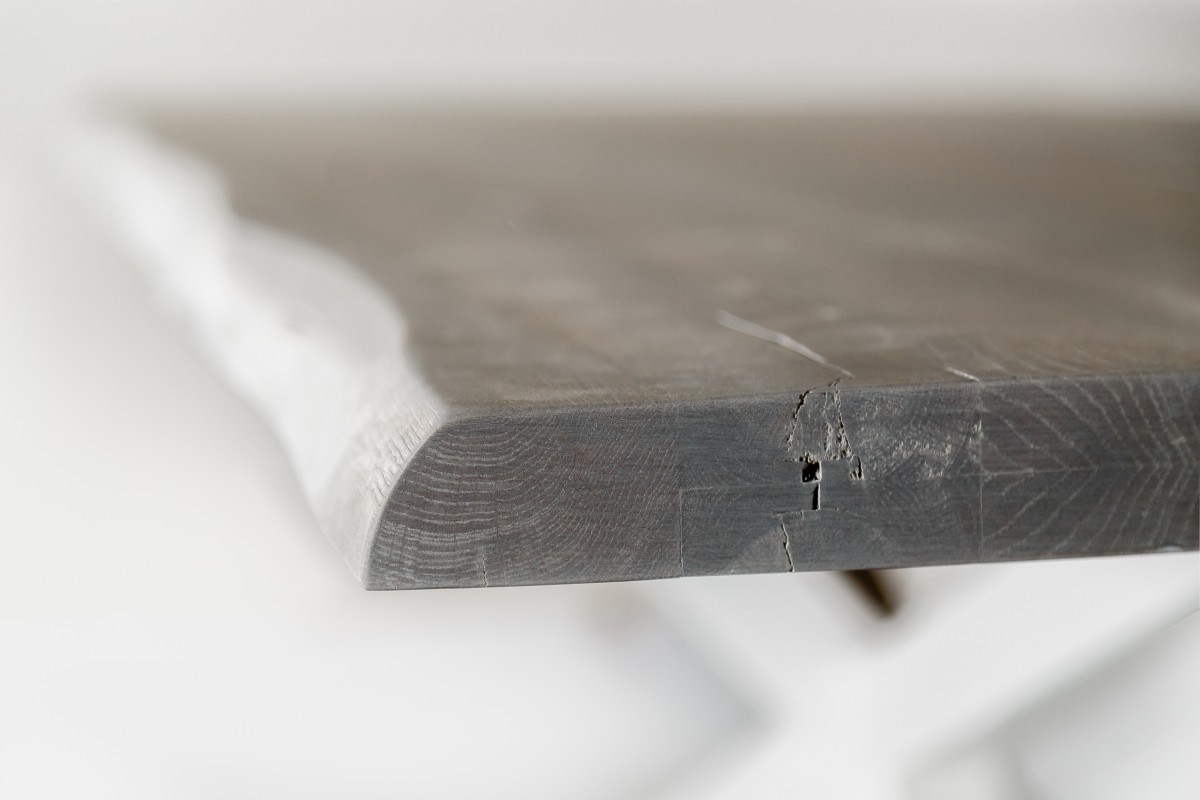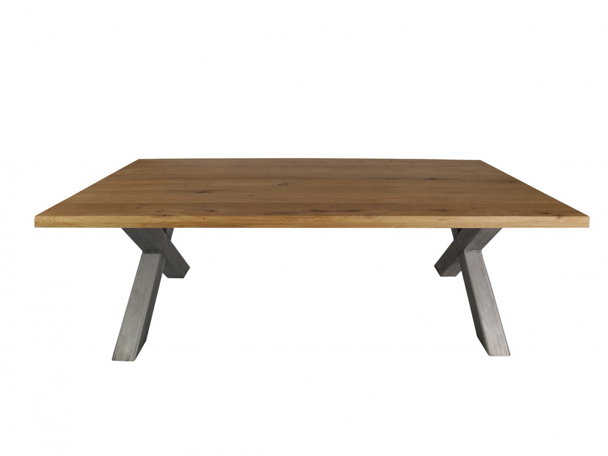 - Tisch mit 2.8 cm Eichenplatte und einem X-Fuß aus Stahl (STRAIGHT)