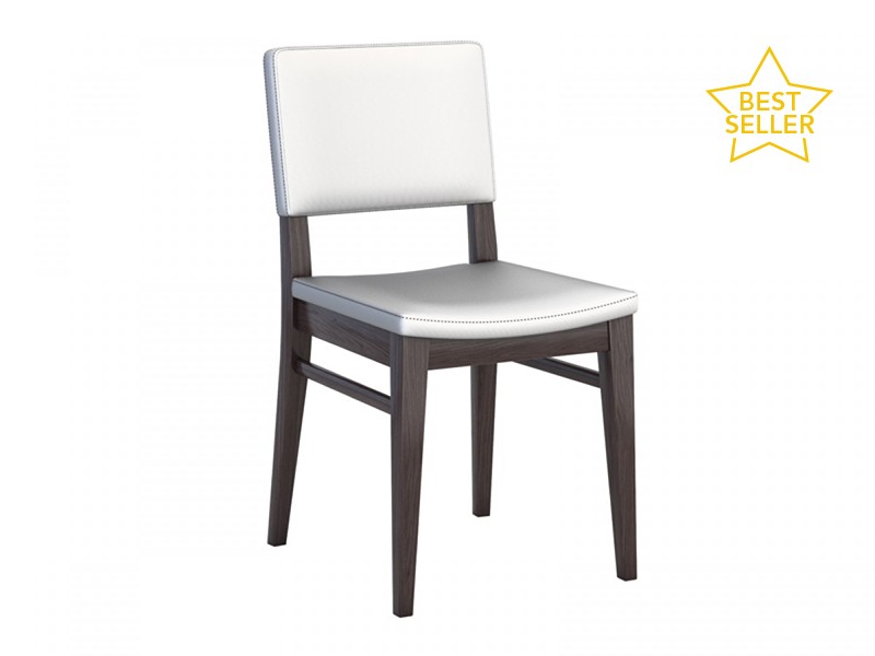 - Stuhl aus Buche mit Polstersitz und -Rücken.
