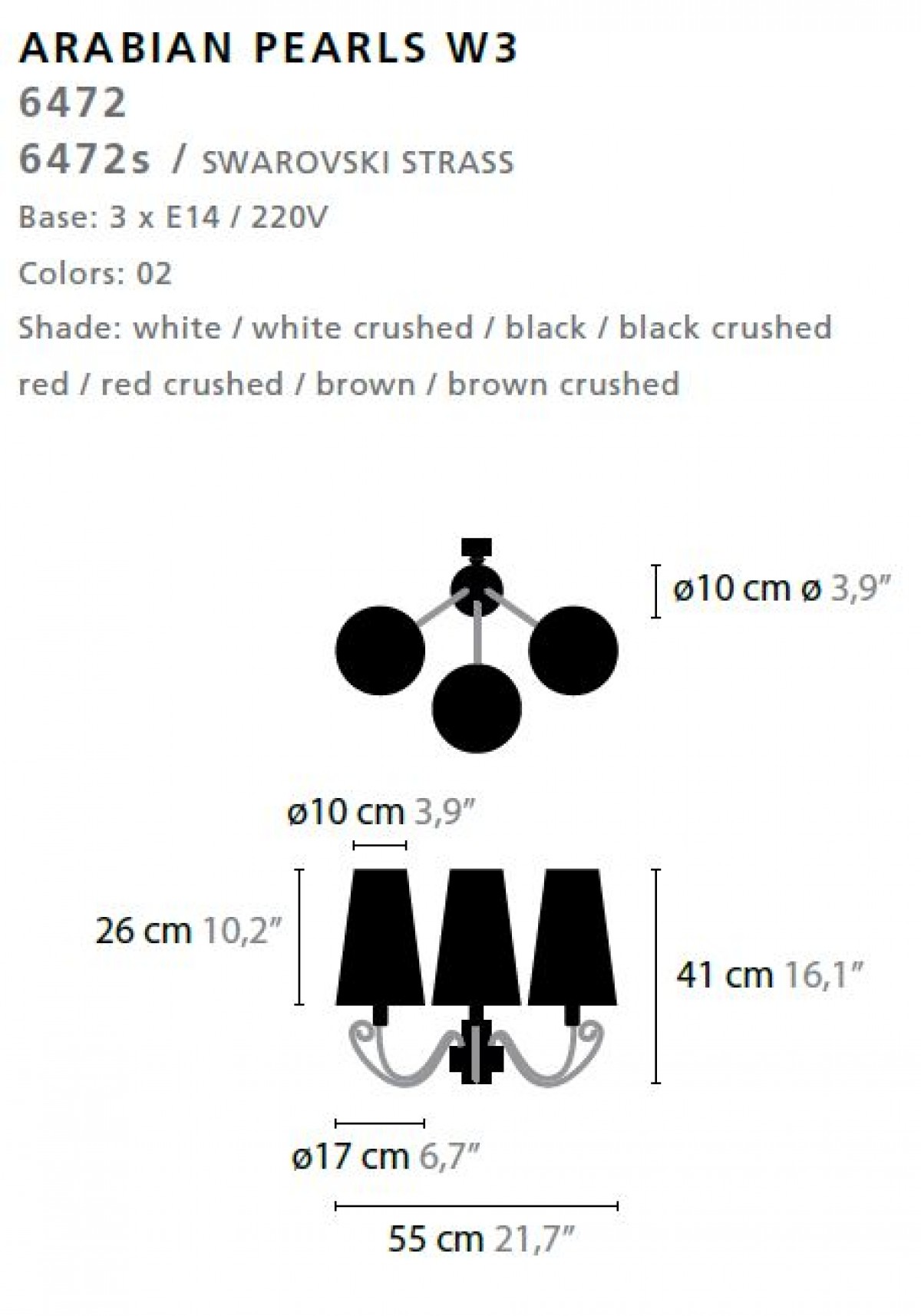 - Base: 3 x E14 / 220V / MAX. 25W