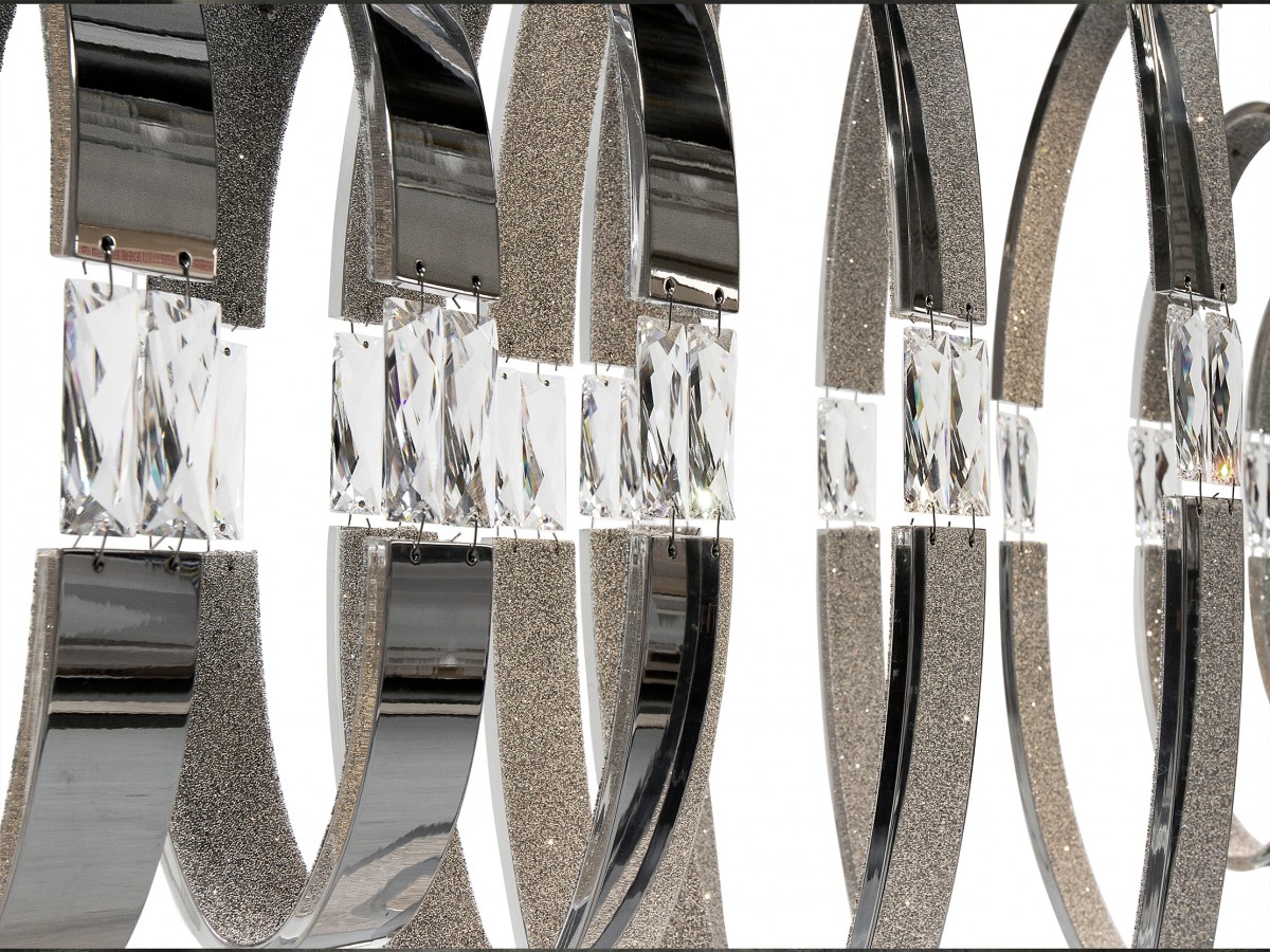 Clear lines resulting in organic classical sculptures, crystalized with Swarovski Fabric crystals inside and connected with the most sparkling Swarovski Strass crystals. Crystals as the heart of fascinating sculptures.
