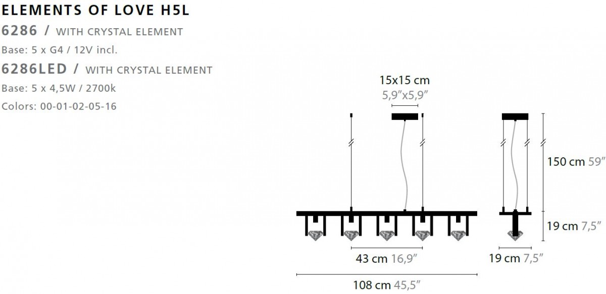 - Base: 5 x 4,5W / 2700K