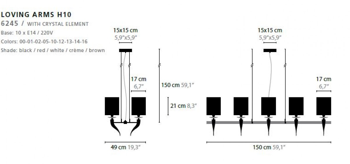 - Base: 10 x E14 / 220V / MAX. 40W