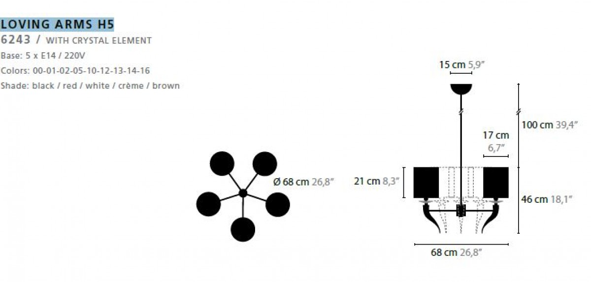 - Base: 5 x E14 / 220V / MAX. 40W