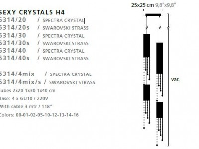 - Base: 4 x GU10 / 220V / MAX. 50W