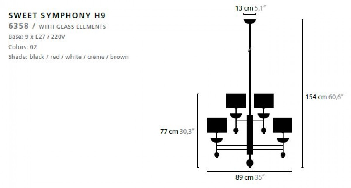 - Base: 9 x E27 / 220V / MAX. 40W