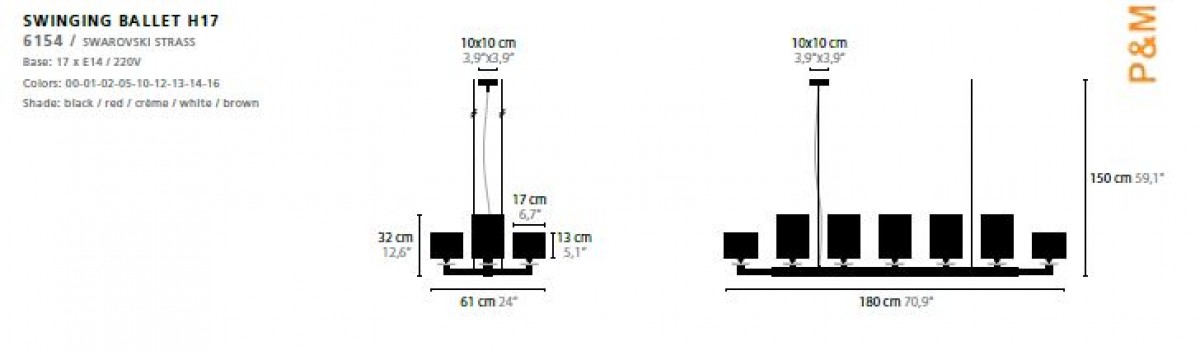 - Base: 17 x E14 / 220V / MAX. 40W