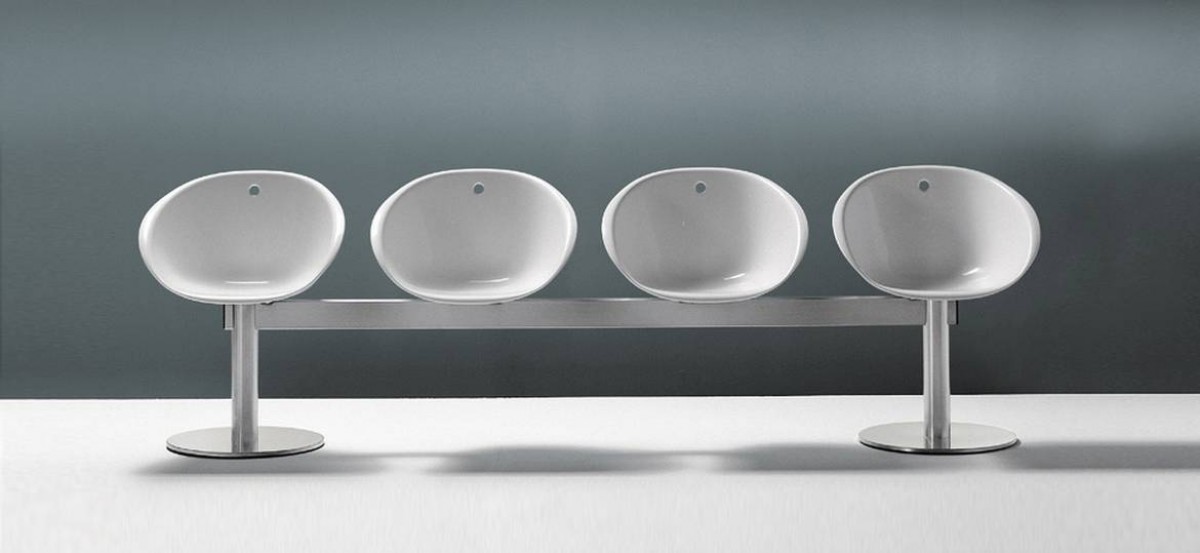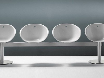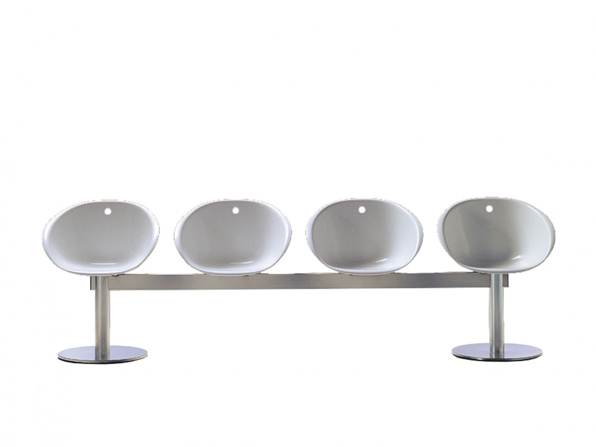 - Viersitzbank mit Technopolymerschale und Edelstahlgestell.
