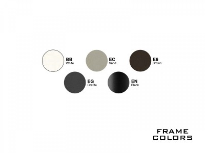- Rahmen in verschiedenen Ausführungen erhältlich: Weiß, Sand, Grafit, brauner Stahl, Schwarz.