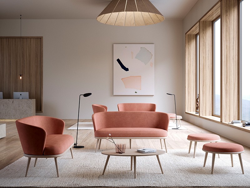 - Audrey Double ist ein stilvolles Sofa aus Buchenholz mit elegant geschwungenen Armlehnen. Sein modernes Design macht es zu einer ausgezeichneten Wahl für Gastronomiebetriebe wie Restaurants, Cafés und verschiedene andere Märkte.