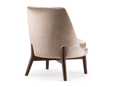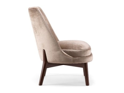 - Die Celine S Lounge mit ihren charakteristischen Holzbeinen, die die Rückenlehne anmutig umschließen, ist ein unverwechselbares Stück.