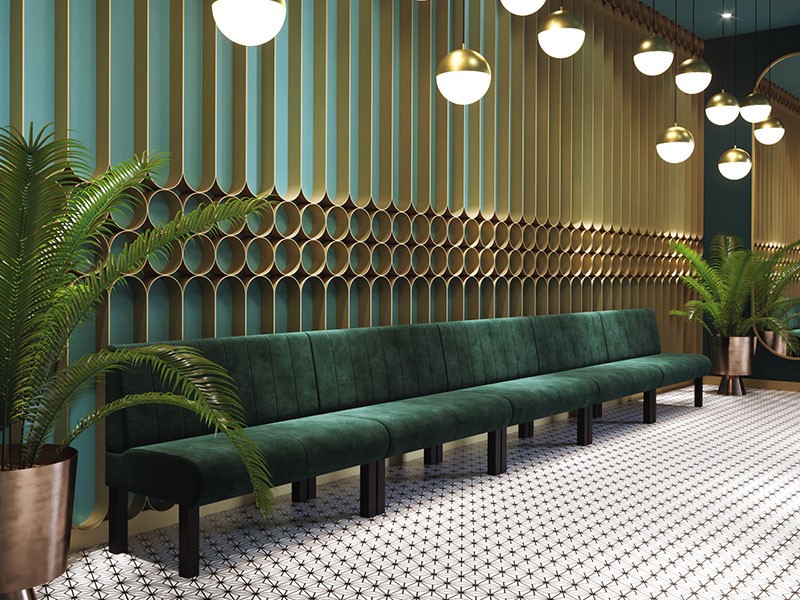- Modulare Gastronomie-Polsterbänke in variablen Größen. Viele Stoff- und Kunstlederbezüge möglich.