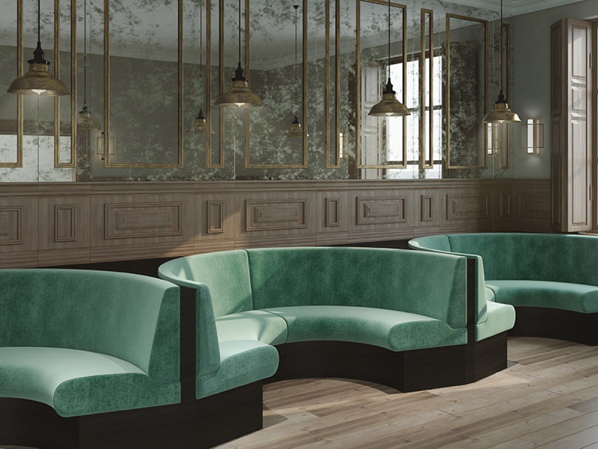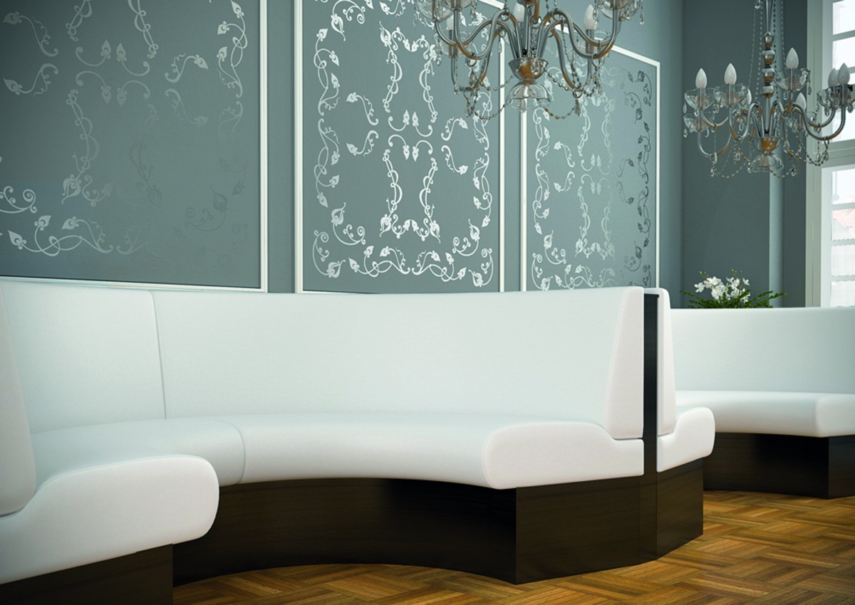 - Modulare Gastronomie-Polsterbänke in variablen Größen. Viele Stoff- und Kunstlederbezüge möglich.