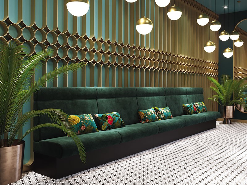 - Modulare Gastronomie-Polsterbänke in variablen Größen. Viele Stoff- und Kunstlederbezüge möglich.