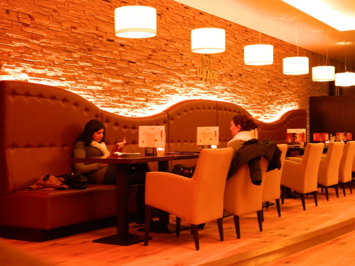 - Die Gastrobank Friends ist in vielen Farben und Dekoren möglich.