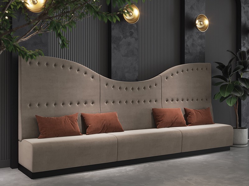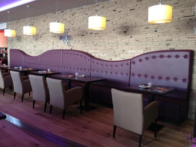 - Modulare Gastronomie-Polsterbänke in variablen Größen. Viele Stoff- und Kunstlederbezüge möglich.