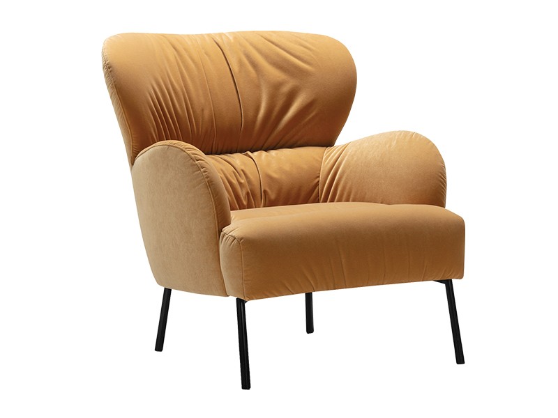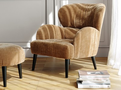 - Die gepolsterte Rückenlehne mit dekorativen Falten sowie die dick gepolsterte Sitzfläche und Fußstütze sorgen für höchsten Komfort.