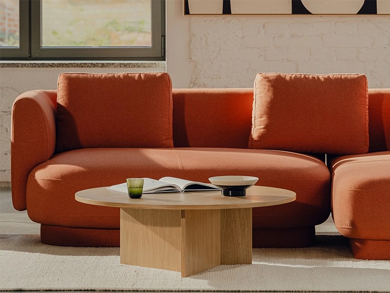 - Kollektion eleganter Sofas mit minimalistischem, kompakt Design und zarten, abgerundeten Formen.