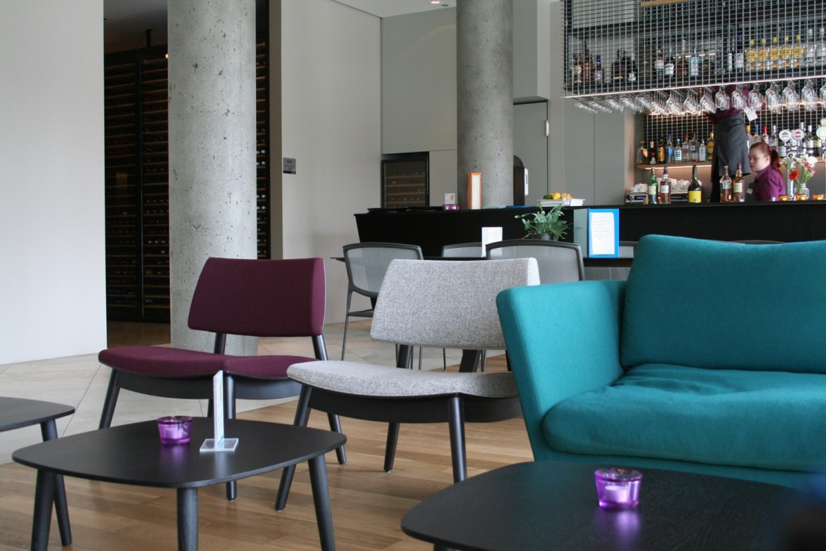 - Lounge-Sessel mit 4-beinigen Buchen Holzgestell.