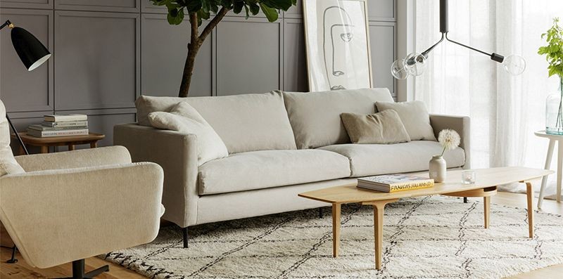- Minimalistisches 3-Sitzer-Sofa mit schlichter Form.