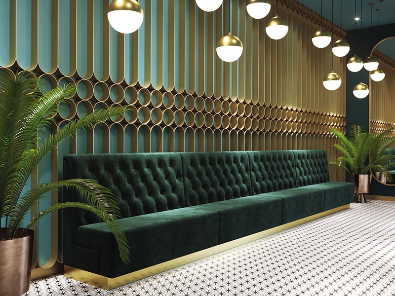 - Modulare Gastronomie-Polsterbänke in variablen Größen. Viele Stoff- und Kunstlederbezüge möglich.