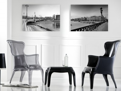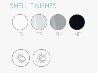 - In Polykarbonat mit glänzendem Finish. In den Faben weiß, schwarz, fumé und transparent zu erhalten.