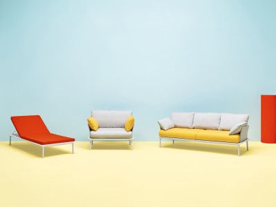- Ein elegantes dreisitzigen Sofa, ein lounge Sessel und ein Liegestuhl, die sich in einem Sofa verwandelt: eine Kollektion für den Außenbereich aus Soft-Design und mit großzügigen Maße.