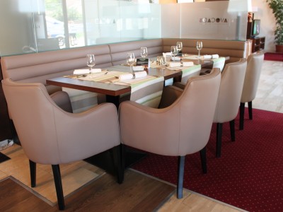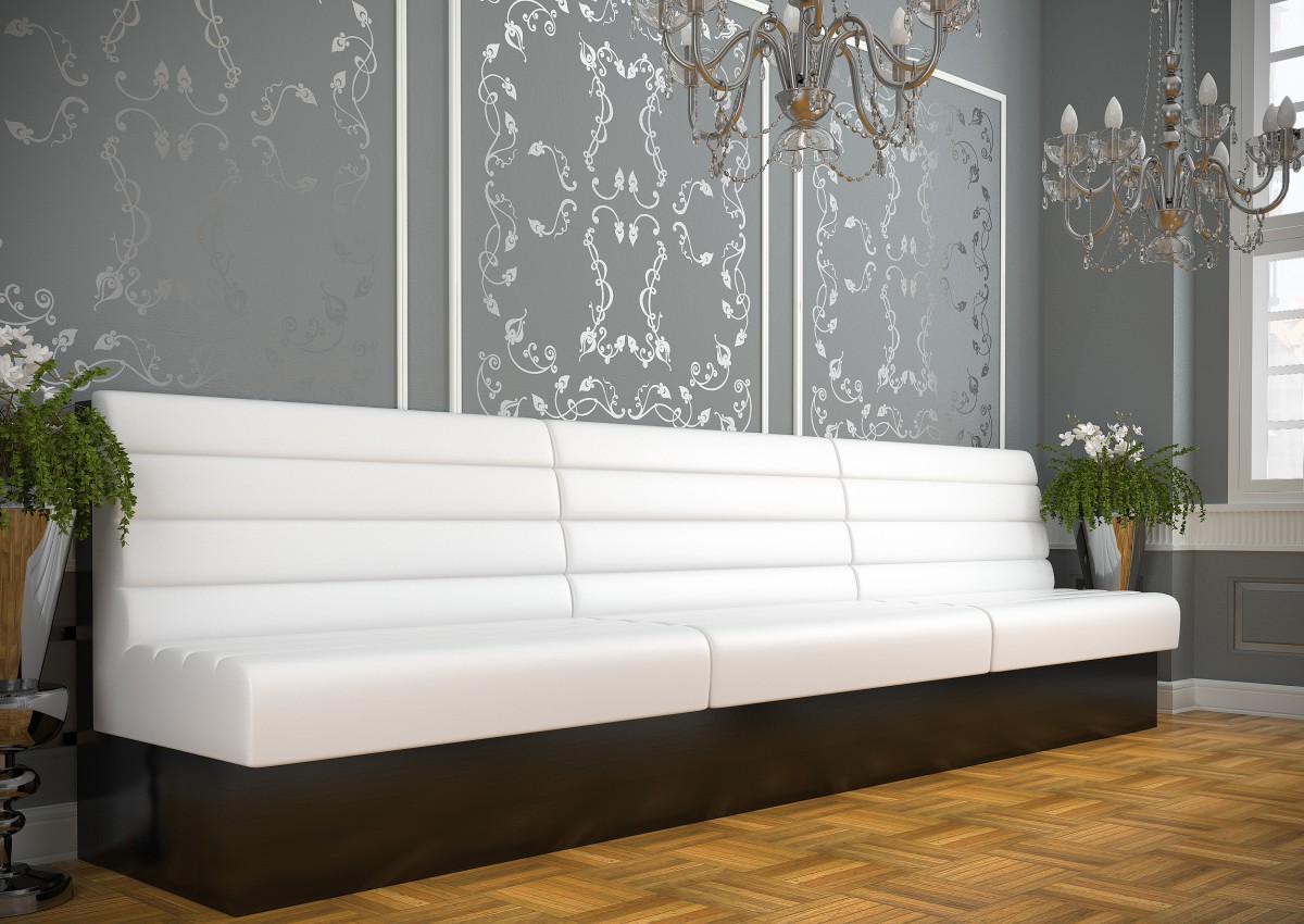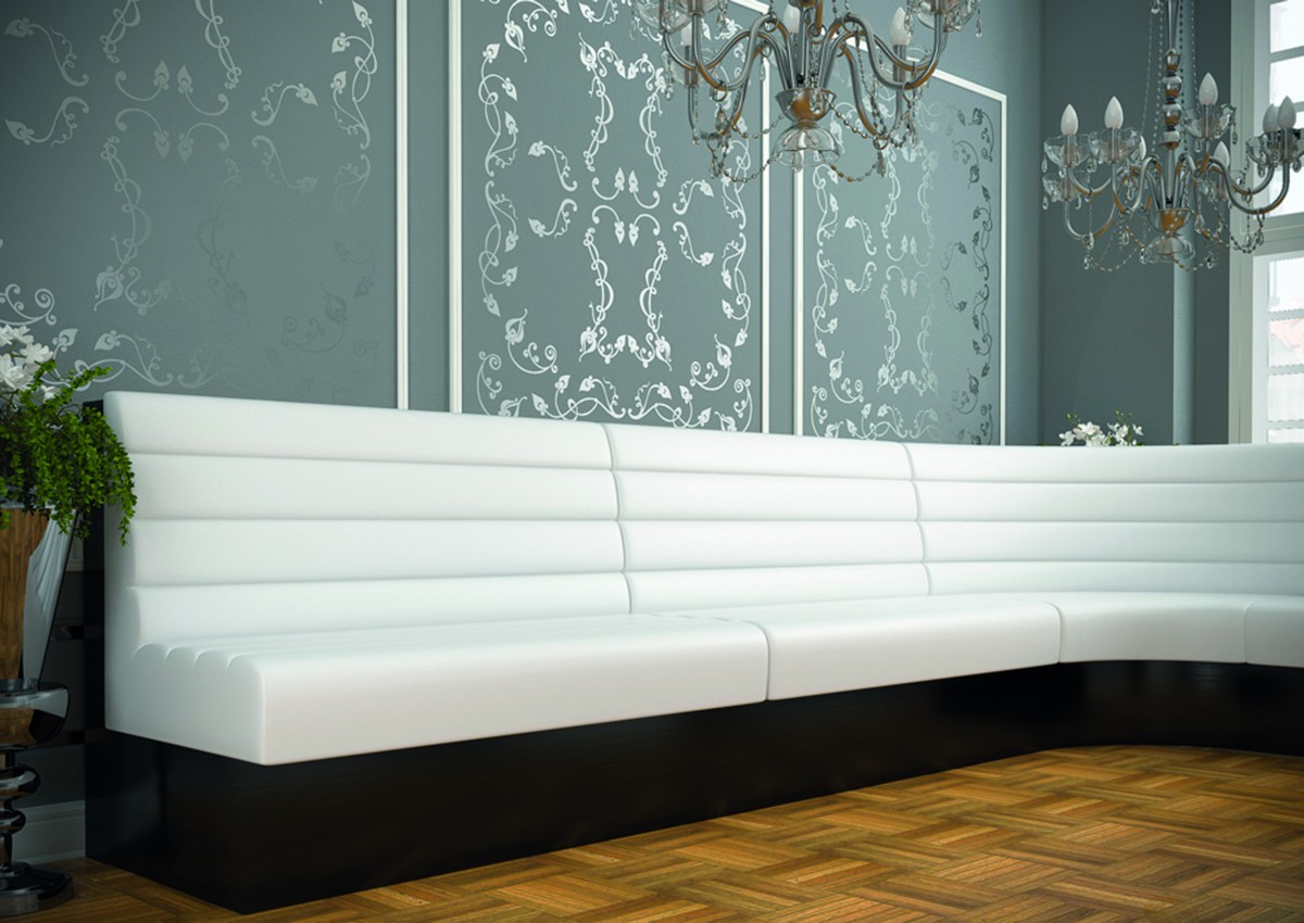 - Modulare Gastronomie-Polsterbänke in variablen Größen. Viele Stoff- und Kunstlederbezüge möglich.