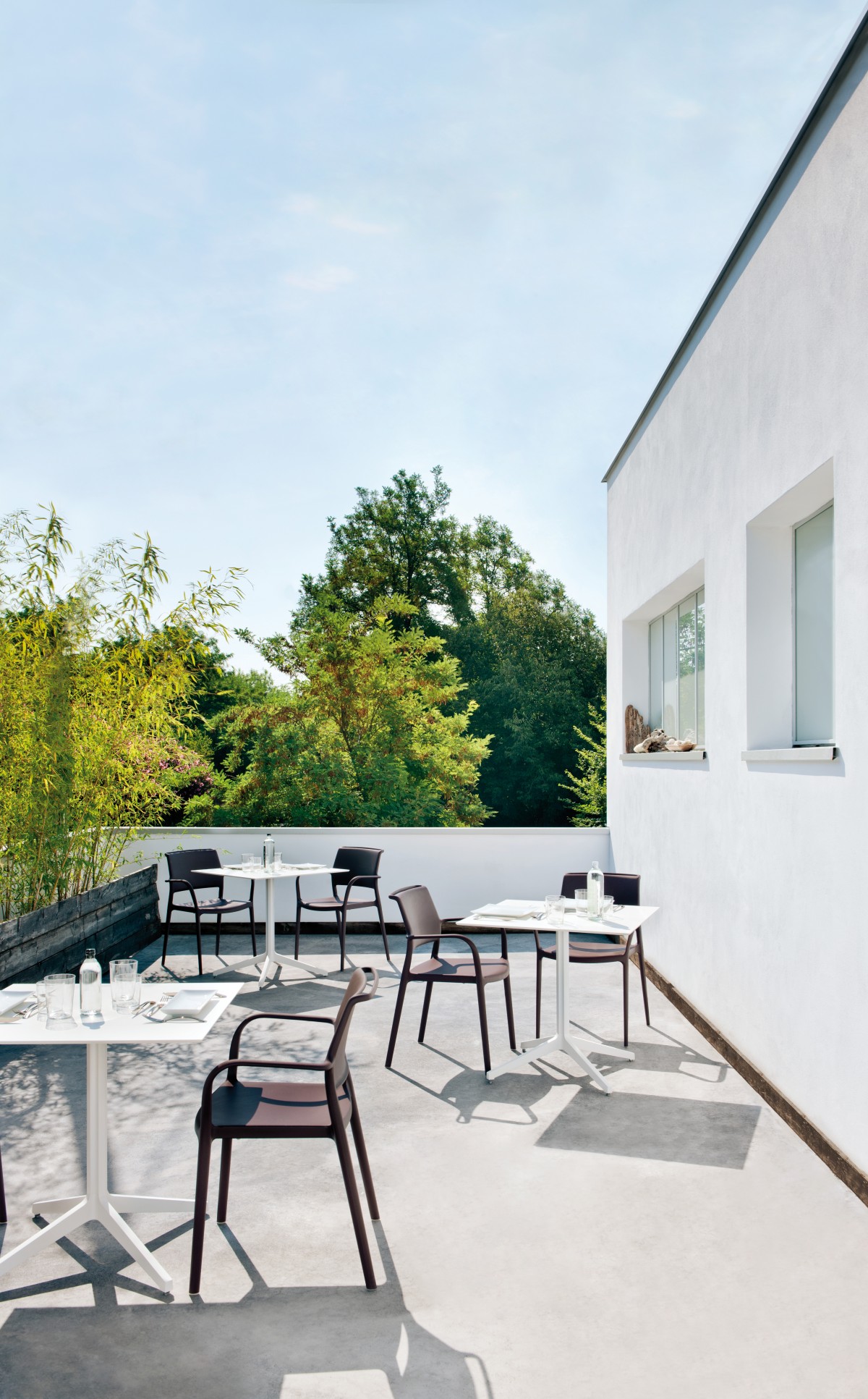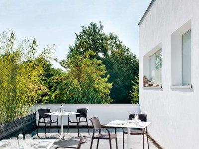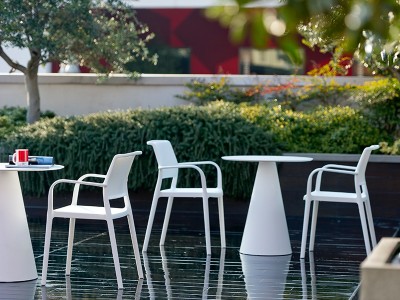- Sessel aus Polypropylen durch Glasfasern verstärkt, stapelbar und sowohl für Innen- als auch Außenbereich geeignet.