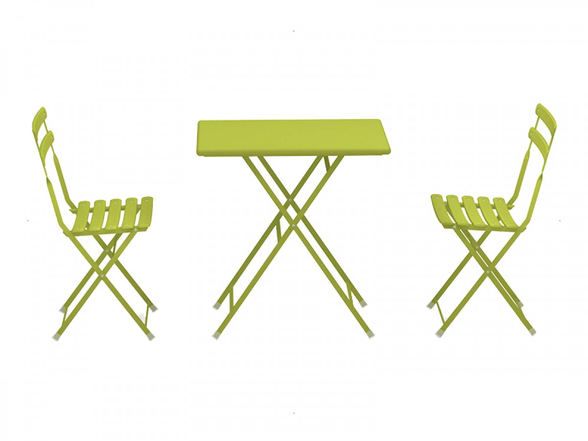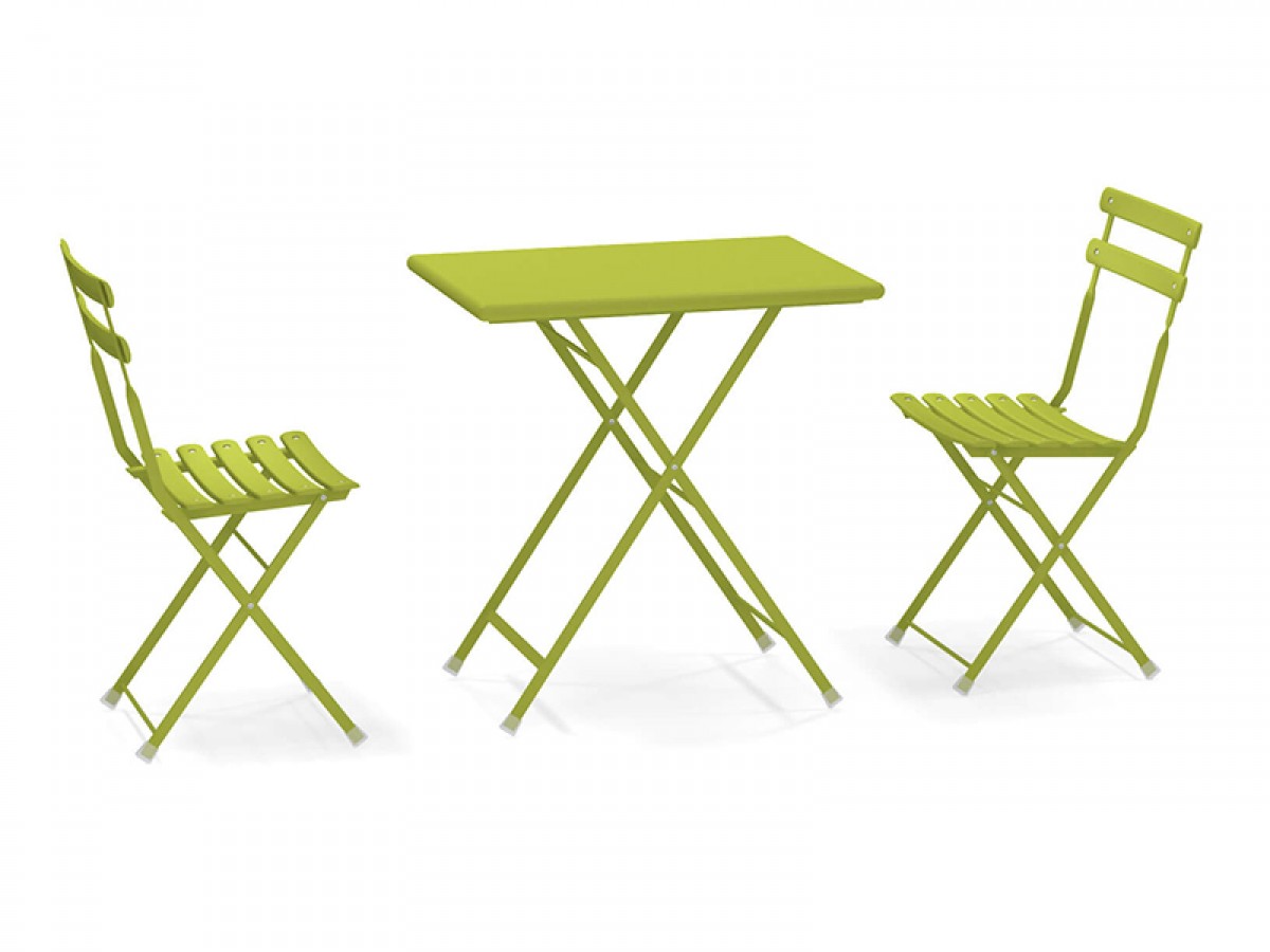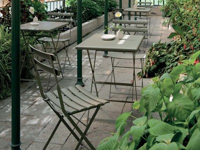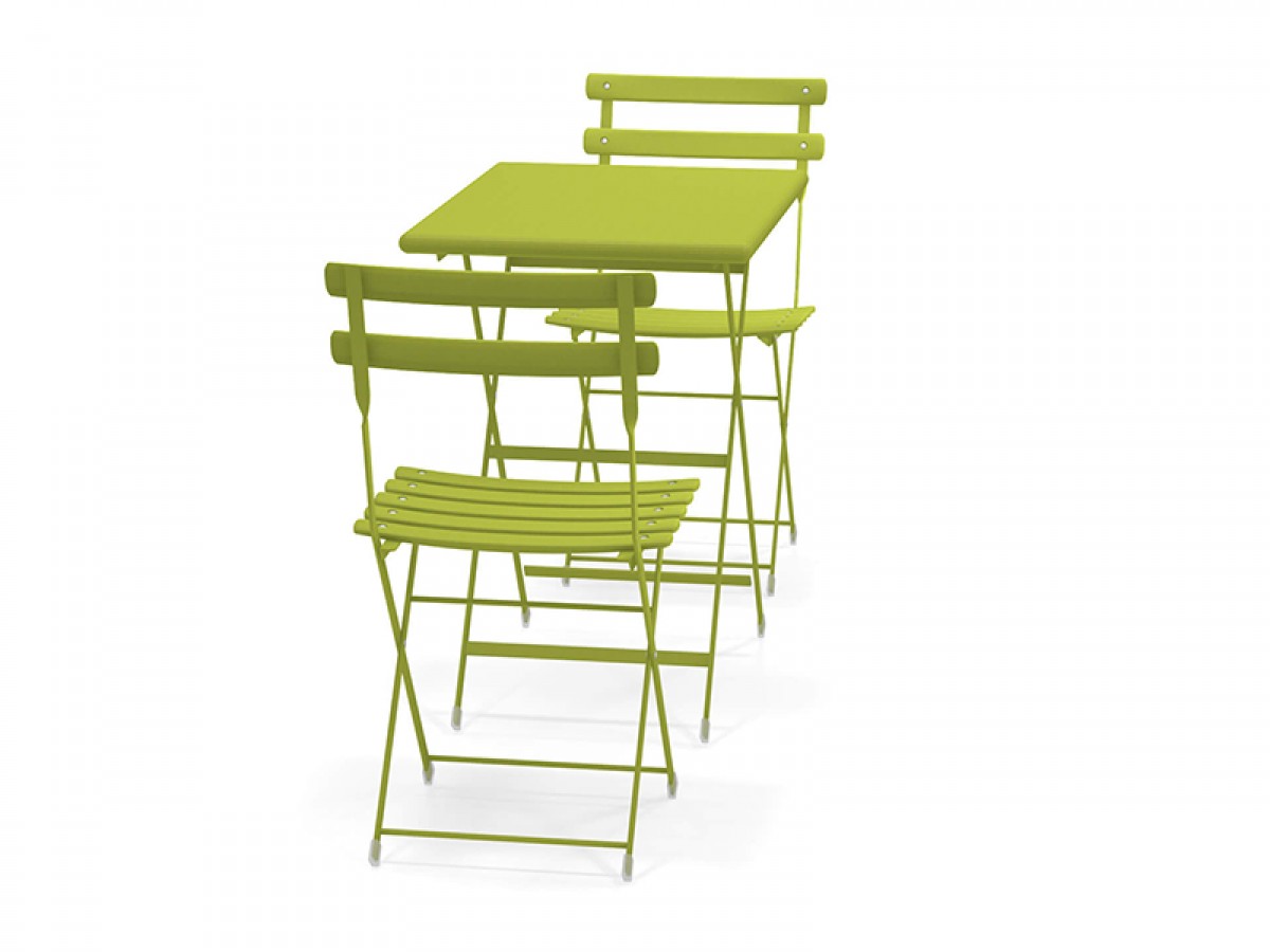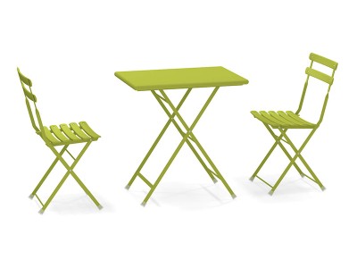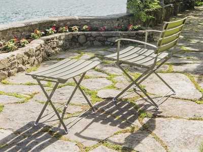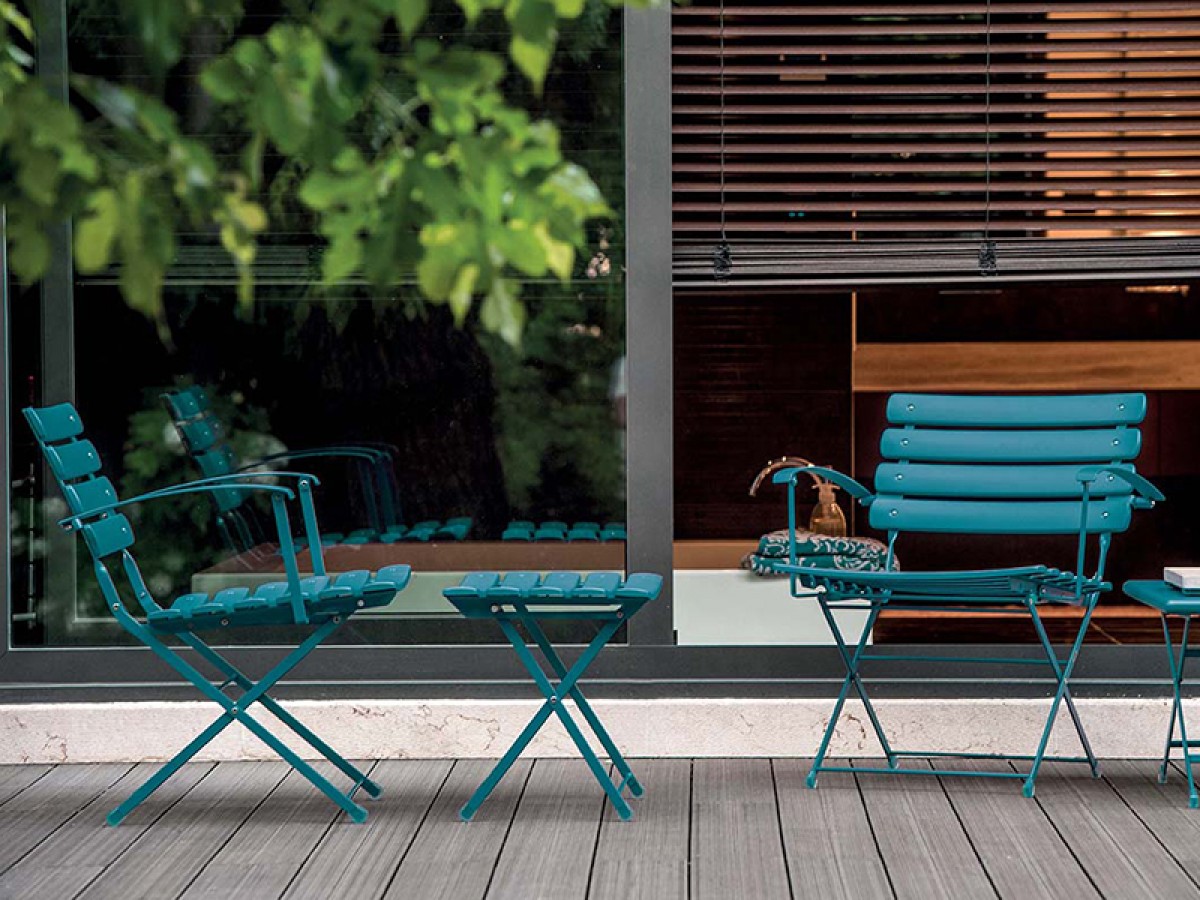 - Unterschiedlich große Tische, Stühle mit oder ohne Armlehnen und Fußstützen, die alle zusammengeklappt werden können, machen diese Möbel sowohl informell als auch dynamisch.