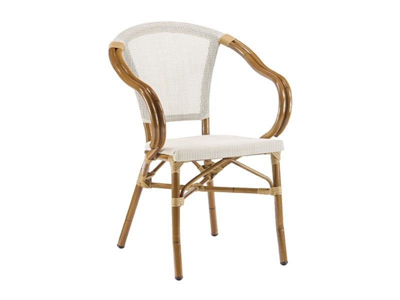 - Der Terrassenstuhl Bertha besteht aus einem lackierten Aluminiumgestell und ist mit 1,5 mm dickem Textylen bezogen.