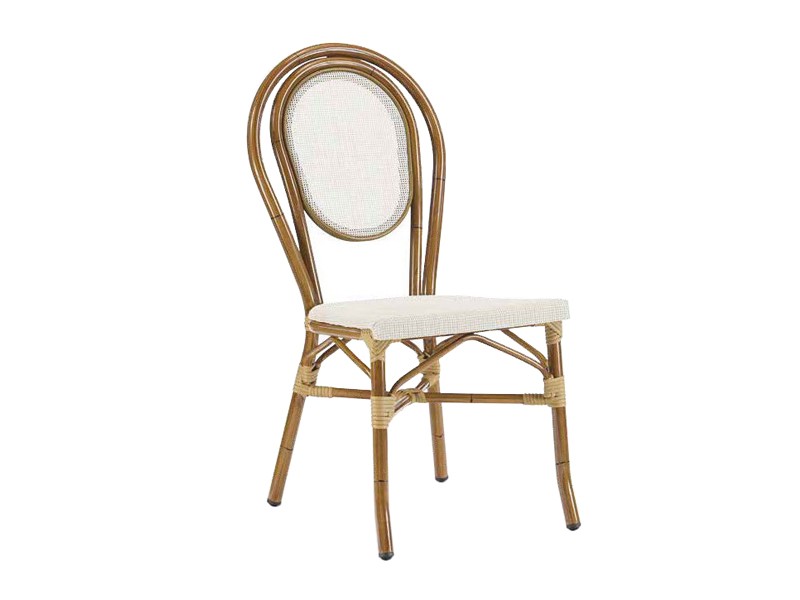- Der Terrassenstuhl Bertha besteht aus einem lackierten Aluminiumgestell und ist mit 1,5 mm dickem Textylen bezogen.
