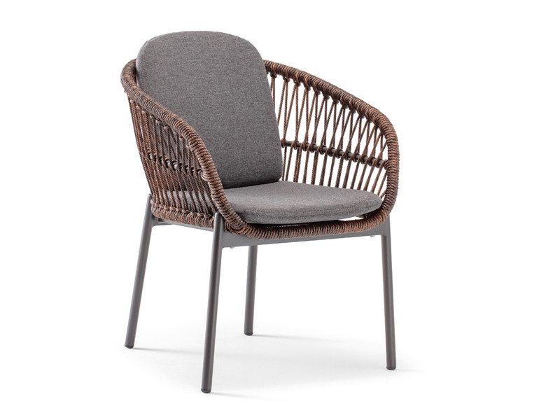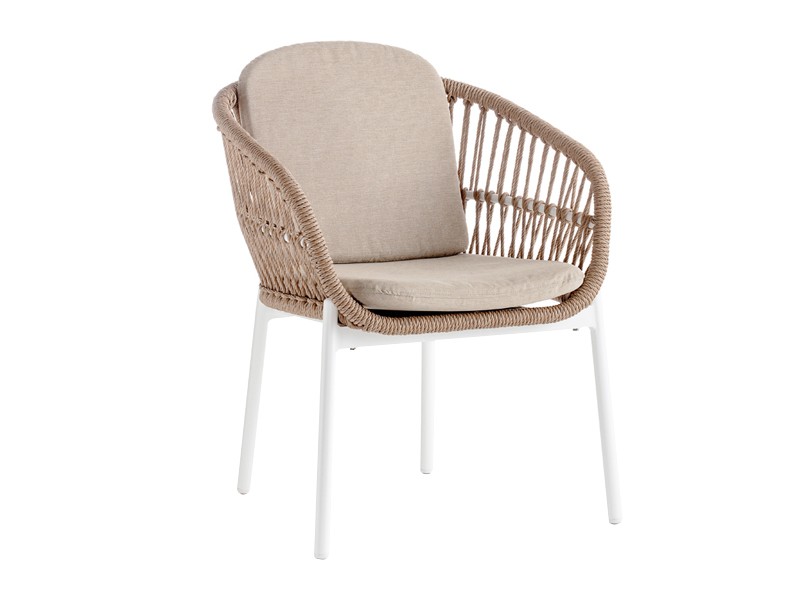 - Dieser Außenstuhl mit Armlehnen besteht aus einem Aluminiumrahmen und ist mit WinTech-Synthetikseil bespannt, das für zusätzliche Haltbarkeit und Stil sorgt.