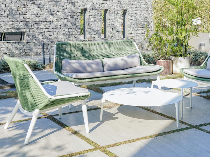 - Die Gestelle dieser Möbel sind aus Aluminium gefertigt und mit einem haltbaren 9 mm starken Acrylseil bespannt.