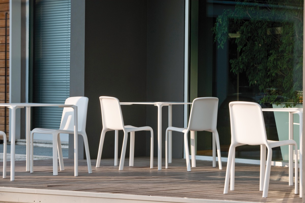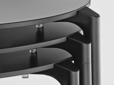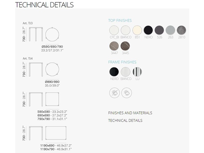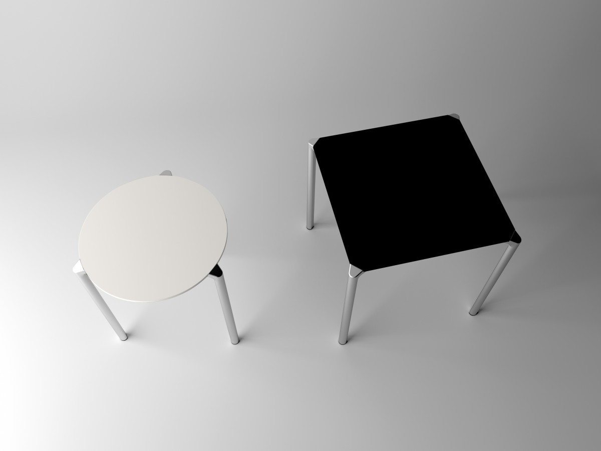 - Mit Kompaktplatten in verschiedenen Farben verfügbar. Beine aus Aluminium, poliert oder pulverbeschichtet weiß oder schwarz.