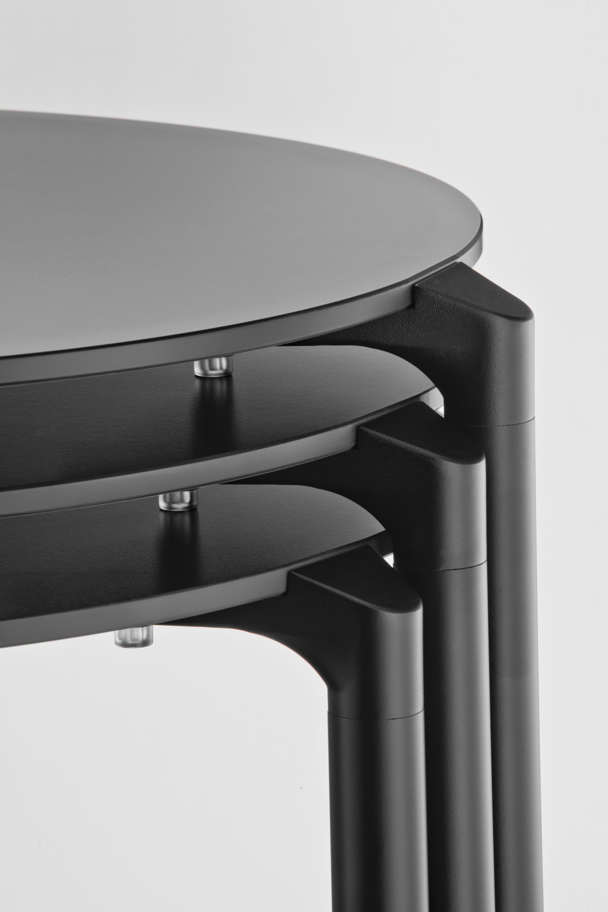 - Jump stapelbarer Tisch, Variante mit drei Beinen.