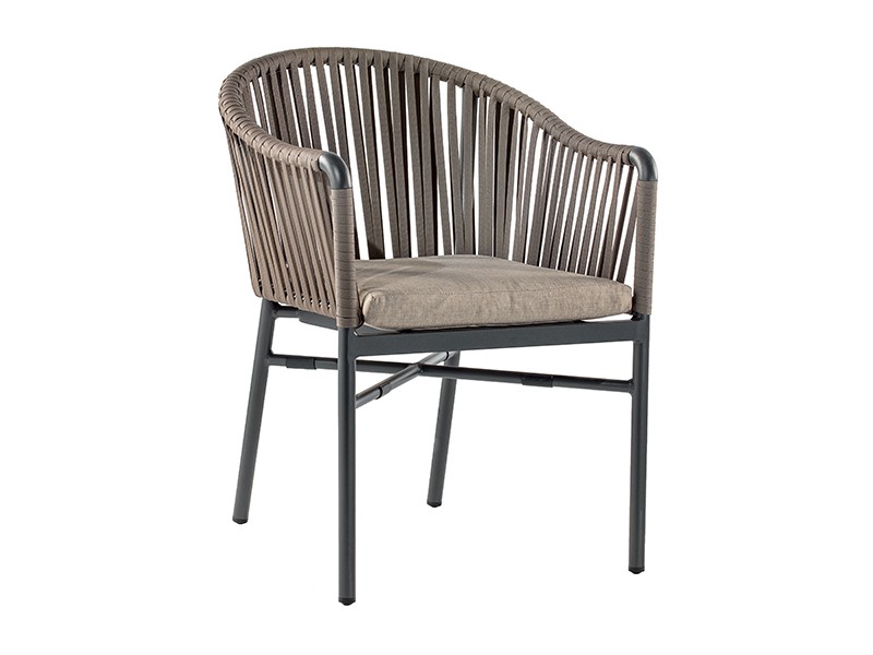 - Lassen Sie sich von unserem stapelbaren Aluminiumsessel mit dem fesselnden "Seil-Look" aus Textylen und Ecowicker-Bezug verführen.