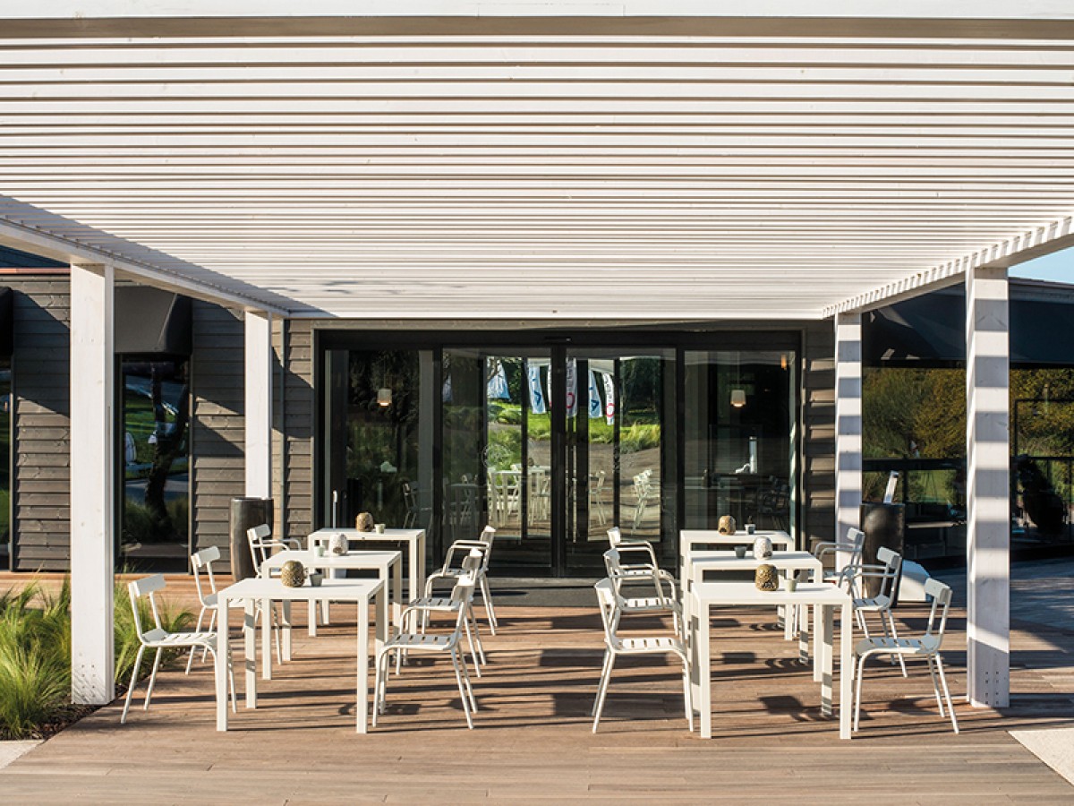 - Struktur aus Stahlrohr, Sitz und Rückenlehne aus verzinktem Stahlblech.