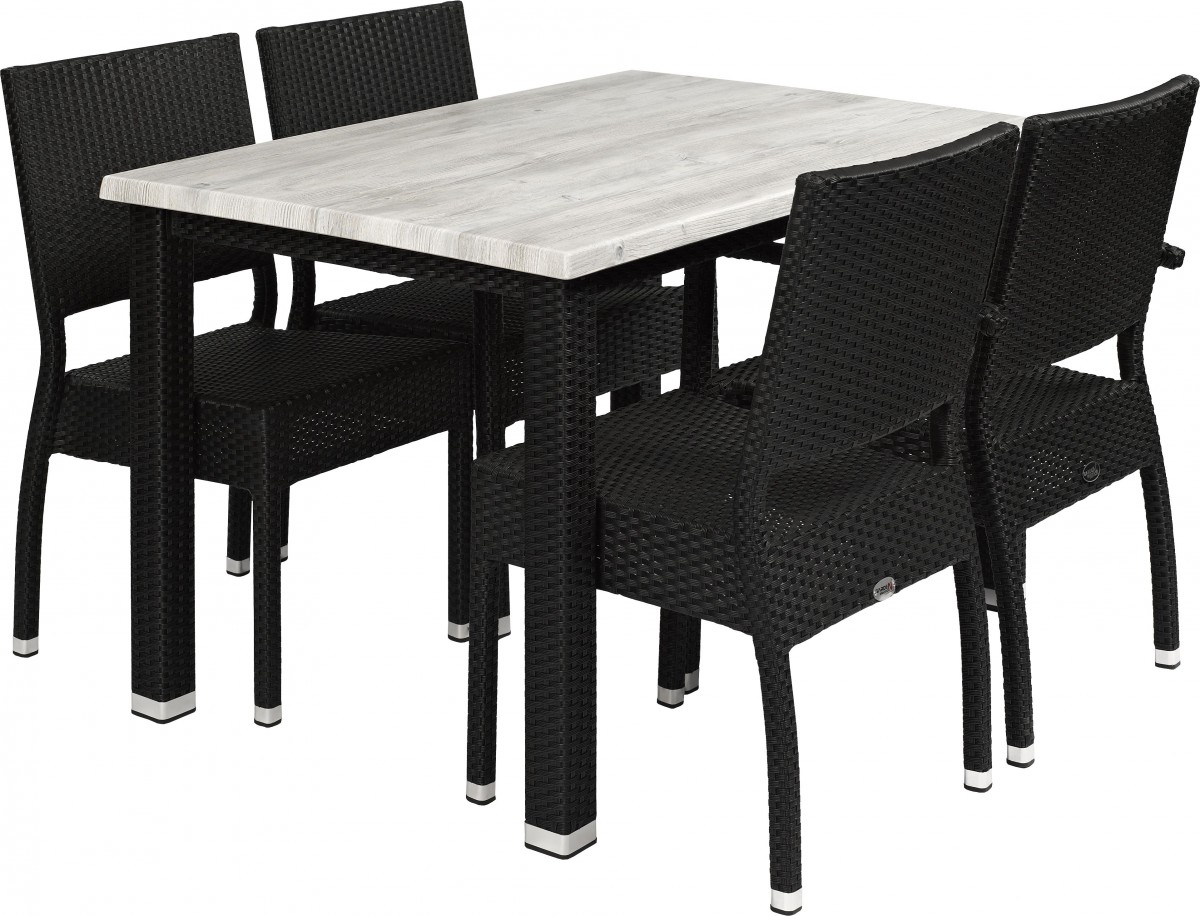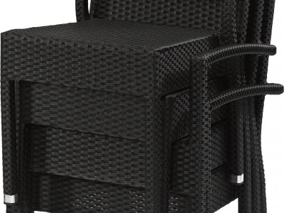 - Sitz/Rückenlehne: Flaches P.E.-Geflecht in schwarzer Farbe
