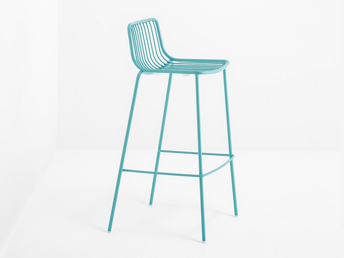- Barhocker mit Struktur aus Stahlrohr für den Außenbereich lackiert.