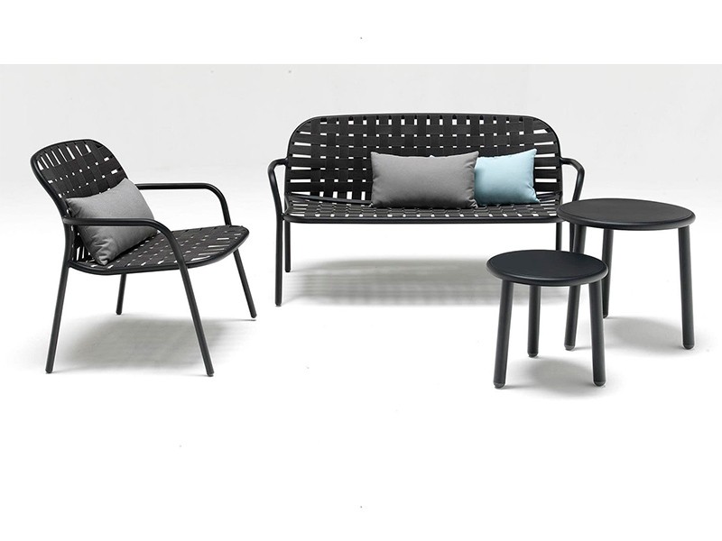 - Bank mit elastischen Bändern gewebt, und Aluminiumrahmen.