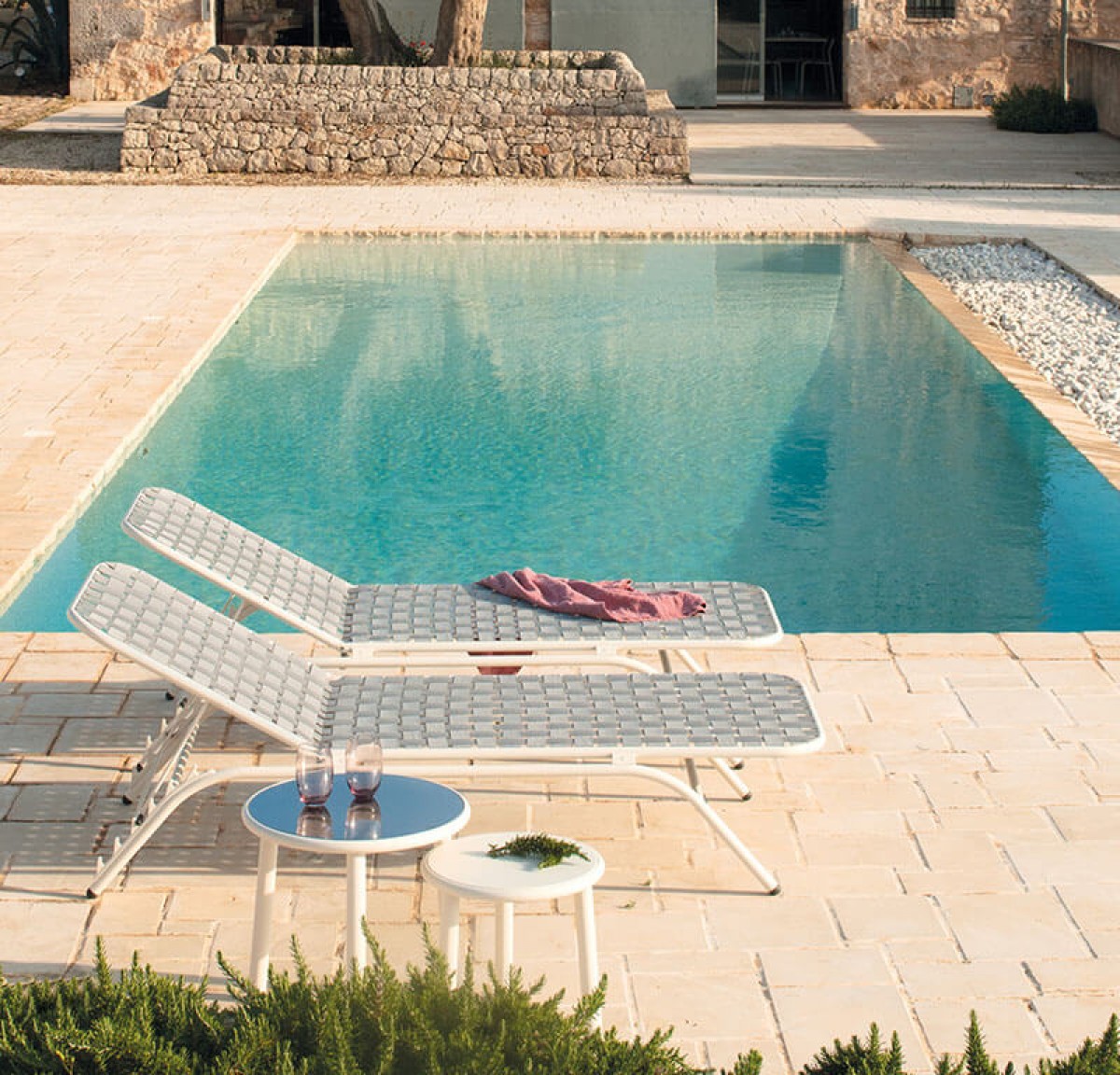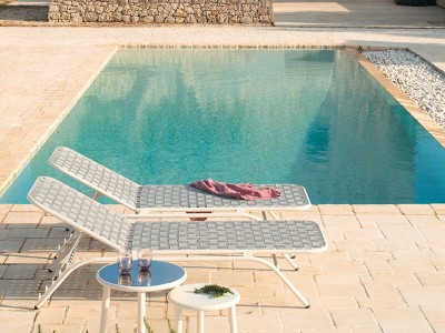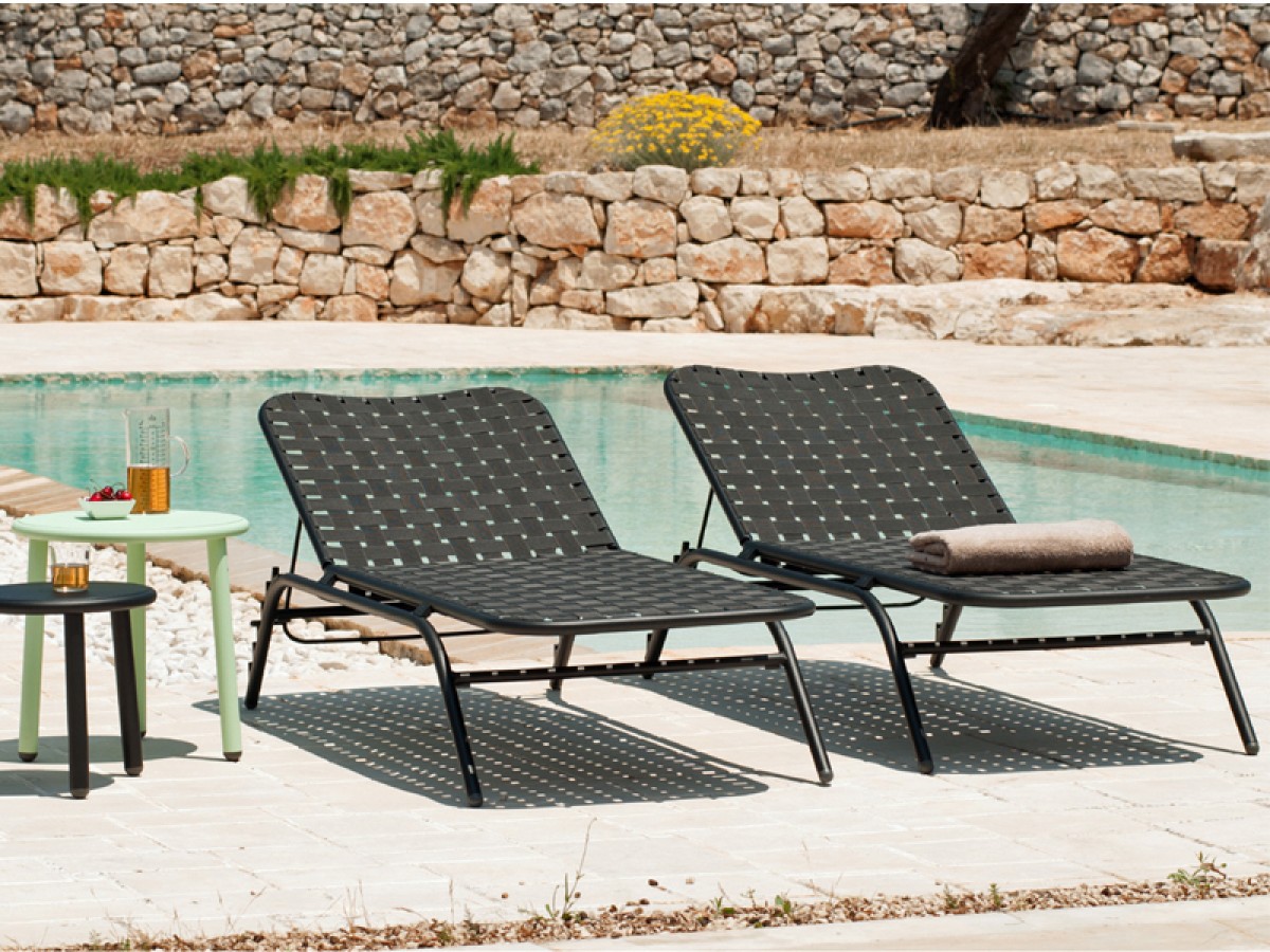 - Sunlounger mit Aluminiumrahmen und gewebte elastische Bänder.