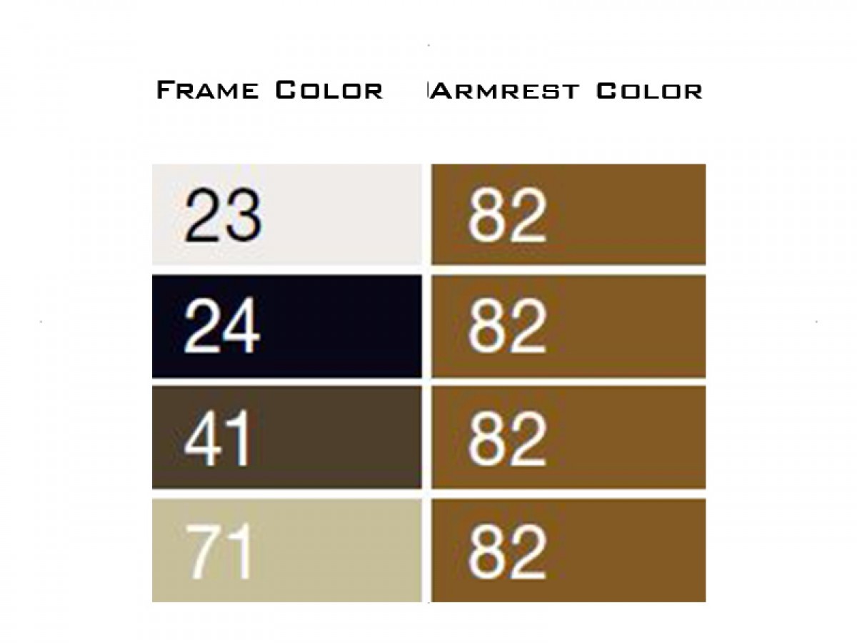- Gestellfarben: Mattweiß, Schwarz, Indischbraun, Taupe, Armlehnen in Teakfarbe.