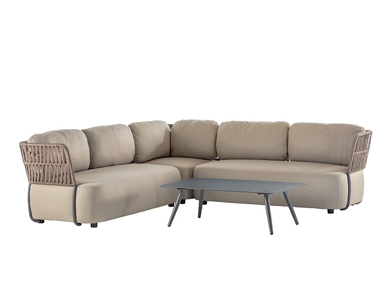 - Erleben Sie den Inbegriff von Stil und Komfort mit unserer mit Polyolefin-Seil bespannten Aluminiumgarnitur.