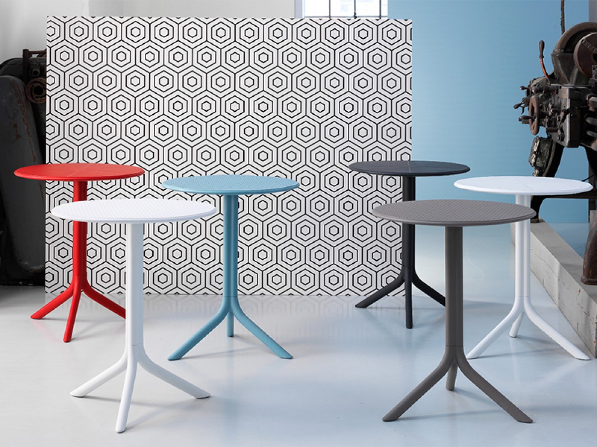 - Tisch mit zentraler Säule und 3 Füßen, mit doppel Hoch Option (standard H cm 73 und mini H cm 40) aus UV-beständigem fiberglass-Polypropylen, voll durchgefärbt.