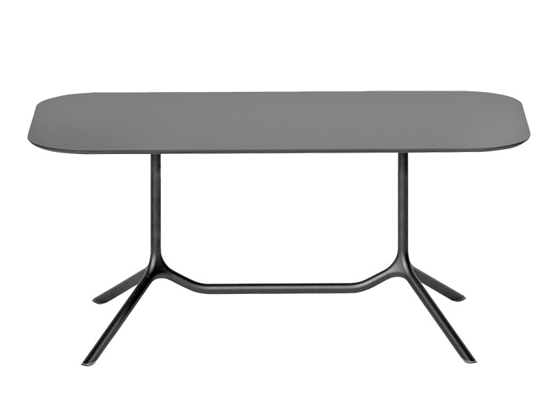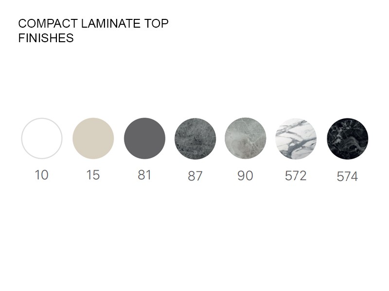 - Rechteckige 160x80 cm Tischplatte aus kompaktem Laminat, Stärke 12 mm, abgeschrägter Rand.